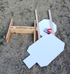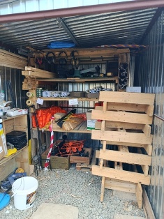 Terče a stojany klubu sú uložené v plechovej bude na strelnici.